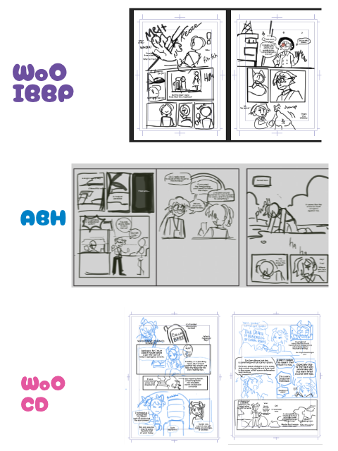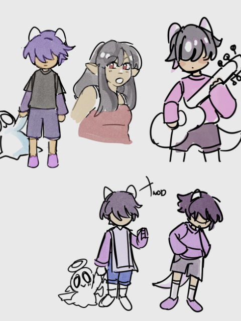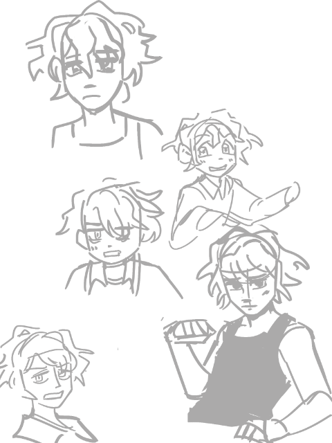 My OC art is very scatter-brained but I swear there's a process in the madness somewhere here. I've been working on upgrading everyone's character ref. Initially, I made the character refs very simple so that people on artfight wouldn't have difficulties drawing them. However! I omitted a lot of key details in their art like - eye shape, nose shape, hair split, etc. If you look at Ariol's character page, I drew his bangs 3 different ways 💀 I had a very... Homestuck-esque way of approaching character design, but as I'm actually beginning to board my comics, I realized that I need to refine everyone's character sheets.