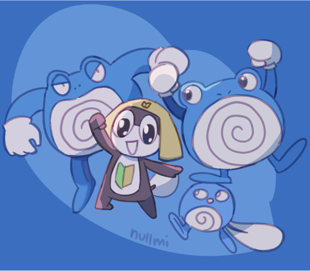 Fanart of Tamama from Keroro Gunsou alongside Poliwhirl, Poliwag and Poliwhorl.